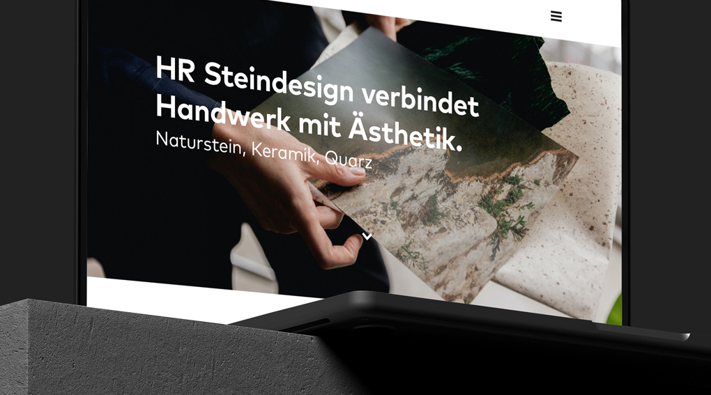 Von der Logogestaltung, Bildsprache, Website und Leitsystem entwickelte Vio Brand Design Studio das ganzheitliche Erscheinungsbild für HR Steindesign. (Website Entwicklung) Timm Sedlmair. Seit 2022. www.hr-steindesign.de